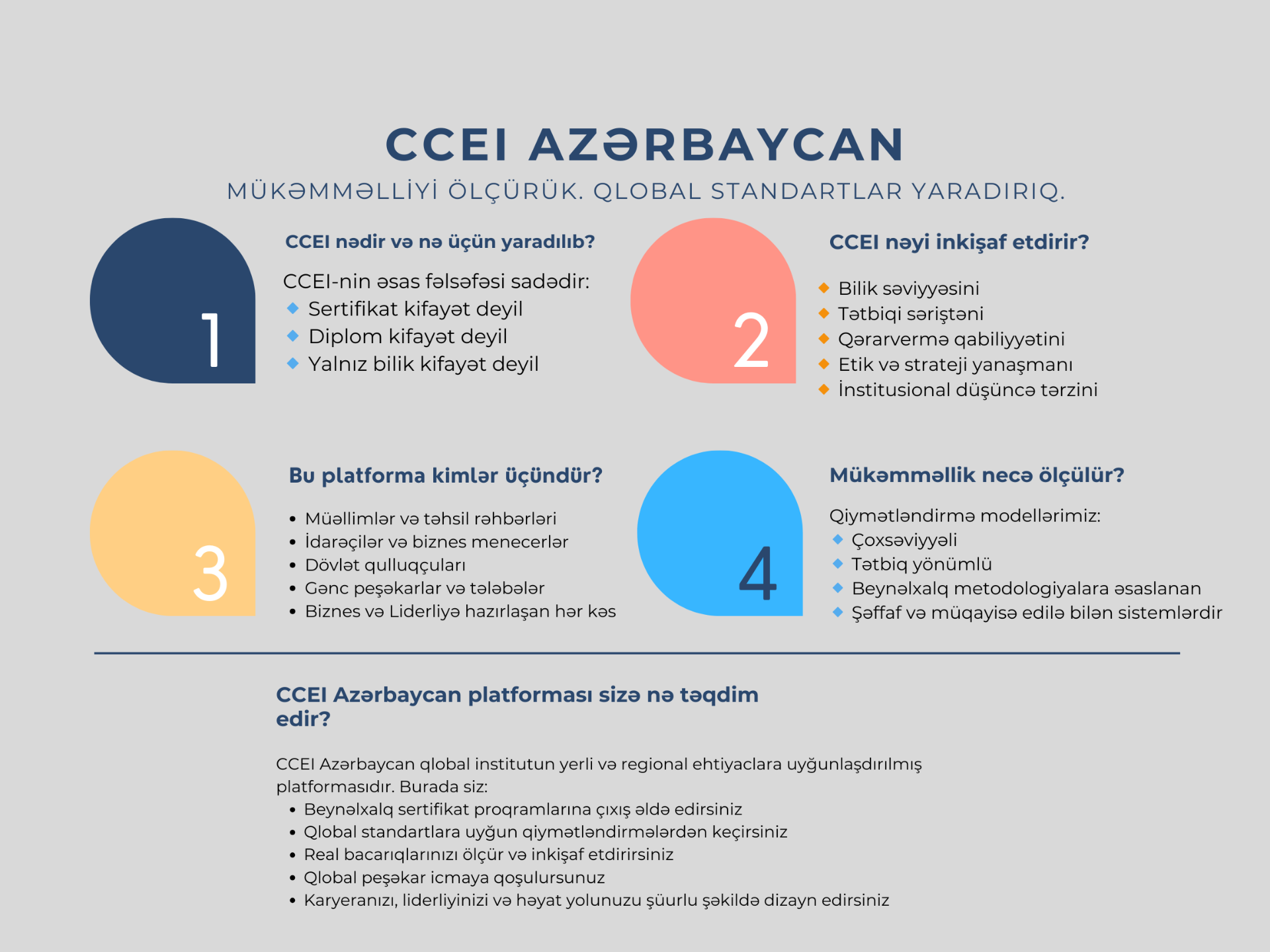 CCEI üzvlüyünə çevik və rahat şəkildə başlamaq istəyənlər üçün ideal seçimdir. Aylıq üzvlüklə bütün proqramlara giriş əldə edin, canlı master-klasslarda iştirak edin, qlobal öyrənmə icmasına qoşulun və inkişaf imkanları ilə tanış olun.