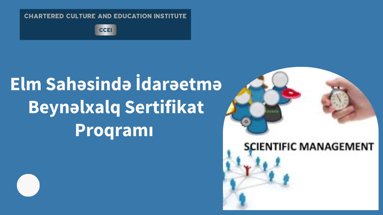 ABŞ mərkəzli CCEI – Chartered Culture and Education Institute tərəfindən ingilis dilində təqdim olunan Elmin İdarəedilməsi Peşəkar Sertifikat Proqramı (Science Management Professional – SMP Executive Certificate)tədqiqatçılar, akademik liderlər və elm siyasəti sahəsində çalışan mütəxəssislər üçün hazırlanmış qlobal yönümlü peşəkar inkişaf proqramıdır. Proqram iştirakçılara elm idarəçiliyi, strateji liderlik, elm siyasəti, maliyyələşdirmə, qiymətləndirmə, elm kommunikasiyası və etik yanaşmalar üzrə praktik bilik və bacarıqlar qazandırır. Bu proqram xüsusilə universitetlərdə, tədqiqat institutlarında, qrant proqramlarında və elm siyasəti mühitində çalışan peşəkarlar üçün dəyərlidir.