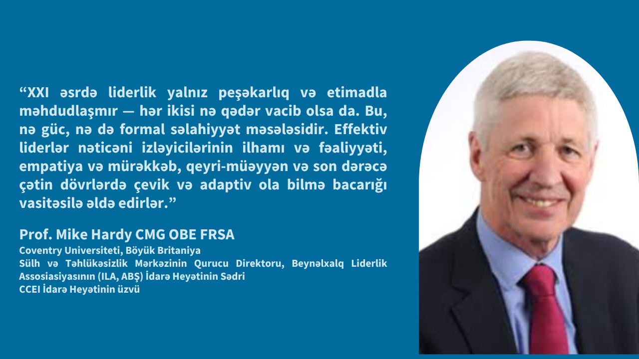 ABŞ mərkəzli CCEI – Chartered Culture and Education Institute tərəfindən təqdim olunan bu unikal inkişaf modeli fərdi və peşəkar inkişaf üçün ən güclü beynəlxalq yanaşmaları vahid sistemdə bir araya gətirir. Proqram çərçivəsində iştirakçılar Karyera və Həyat Dizaynı, Dizayn Düşüncəsi, Yaradıcı və Adaptiv Liderlik, Biznes üçün Mədəni Kompetensiyalar və Qlobal Karyera istiqamətləri üzrə bilik və bacarıqlarını gücləndirir, gələcək karyera və həyat yolunu daha aydın müəyyənləşdirirlər.