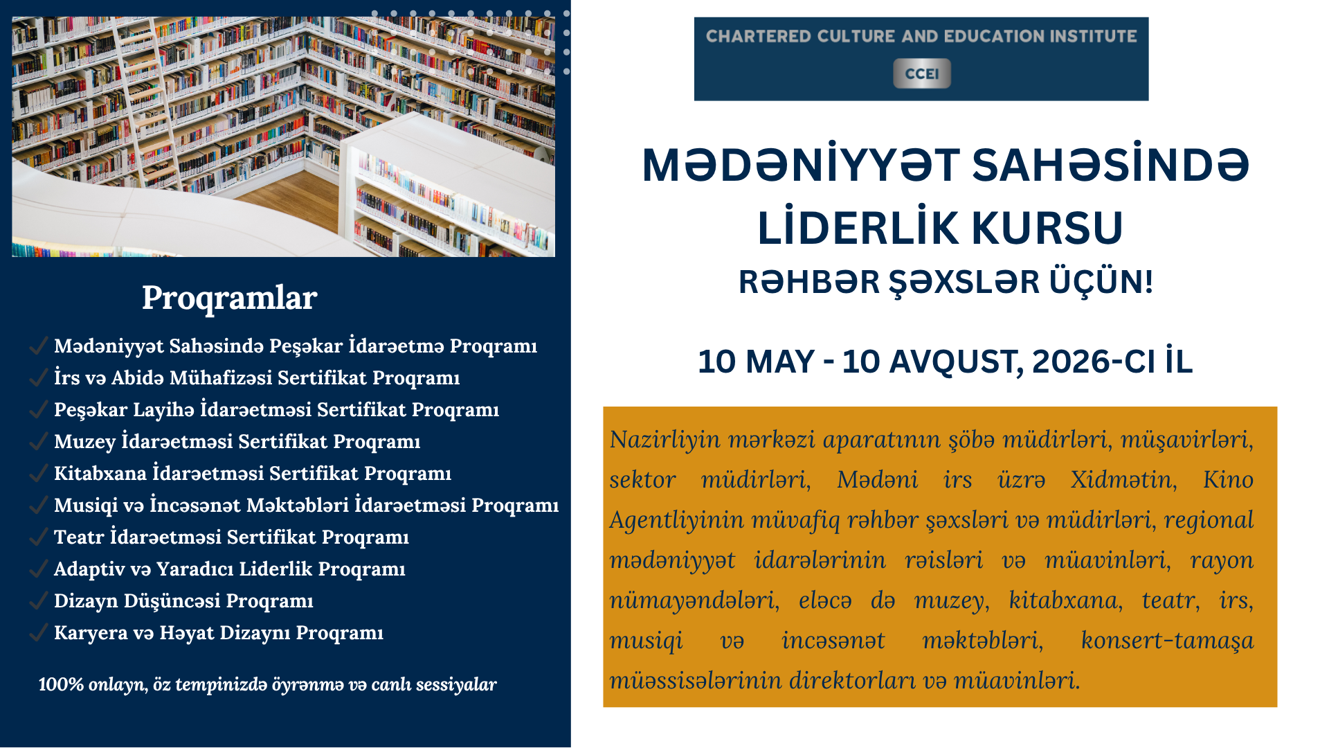 ✔️ Mədəniyyət Sahəsində Peşəkar İdarəetmə Sertifikat Proqramı