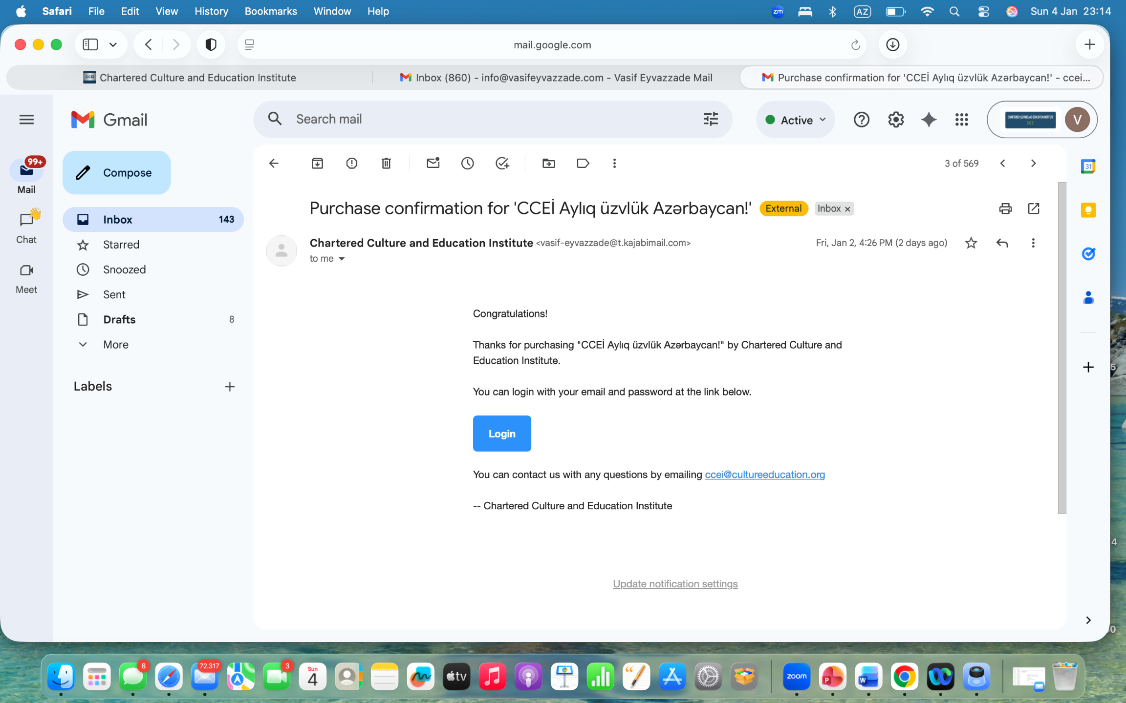 Bundan əlavə siz öz kurs hesabınıza ilk dəfə qeydiyyatdan keçdiyiniz zaman sizə daxil olan təsdiq emailindəki Login vasitəsilə də daxil ola bilərsiniz.