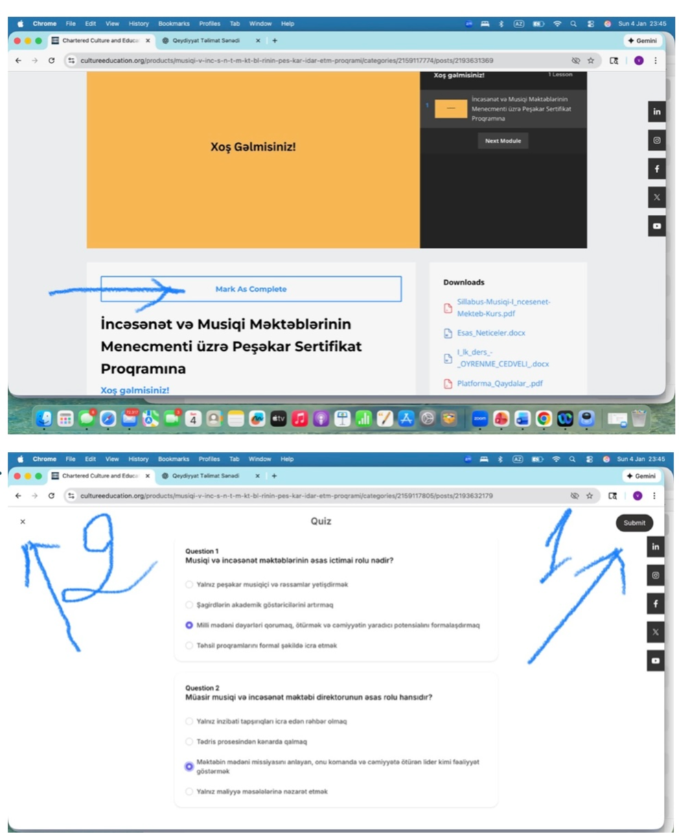 - Modul və dərslərə ardıcıllıqla başlaya bilərsiniz